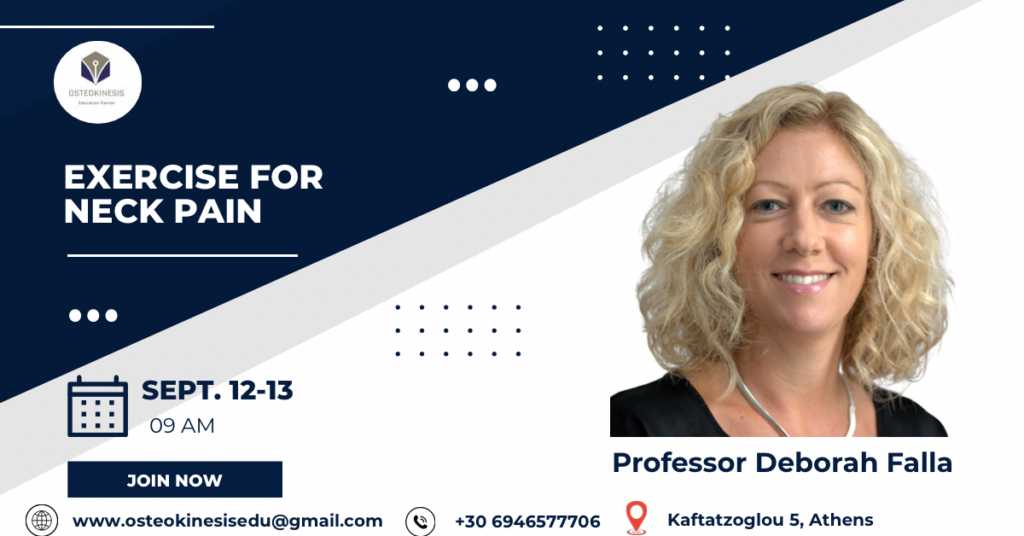 Το σεμινάριο παρουσιάζει μια ερευνητικά τεκμηριωμένη προσέγγιση άσκησης για τη διαχείριση του αυχενικού πόνου. Το πρόγραμμα περιλαμβάνει μια προοδευτική σειρά ασκήσεων για τον αυχένα, βασισμένων σε λεπτομερή ανάλυση της κίνησης και σε ειδικές δοκιμασίες μυϊκής λειτουργίας.
